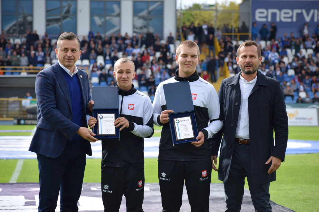 Okolicznościowe patery wręczyli: Jacek Klimek – Prezes FKS Stal Mielec S.A. oraz Damian Gąsiewski – Dyrektor Komunikacji i Marketingu w FKS Stal Mielec S.A.