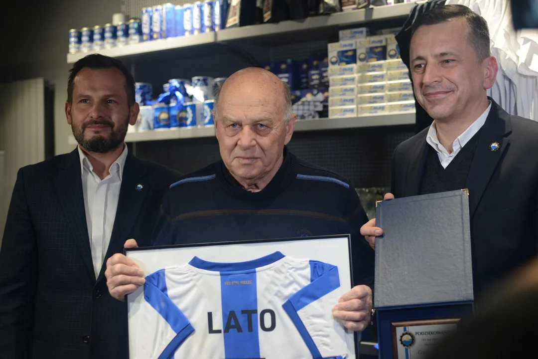 W sklepie Stali Mielec w piątkowe popołudnie panował ogromny ruch. Dlaczego? Na Solskiego przyjechał Grzegorz Lato - legenda biało-niebieskich. Razem z Damianem Gąsiewskim - dyrektorem Komunikacji i Marketingu FKS Stali Mielec S.A. oraz Jacek Klimkiem - prezesem FKS Stali Mielec S.A.