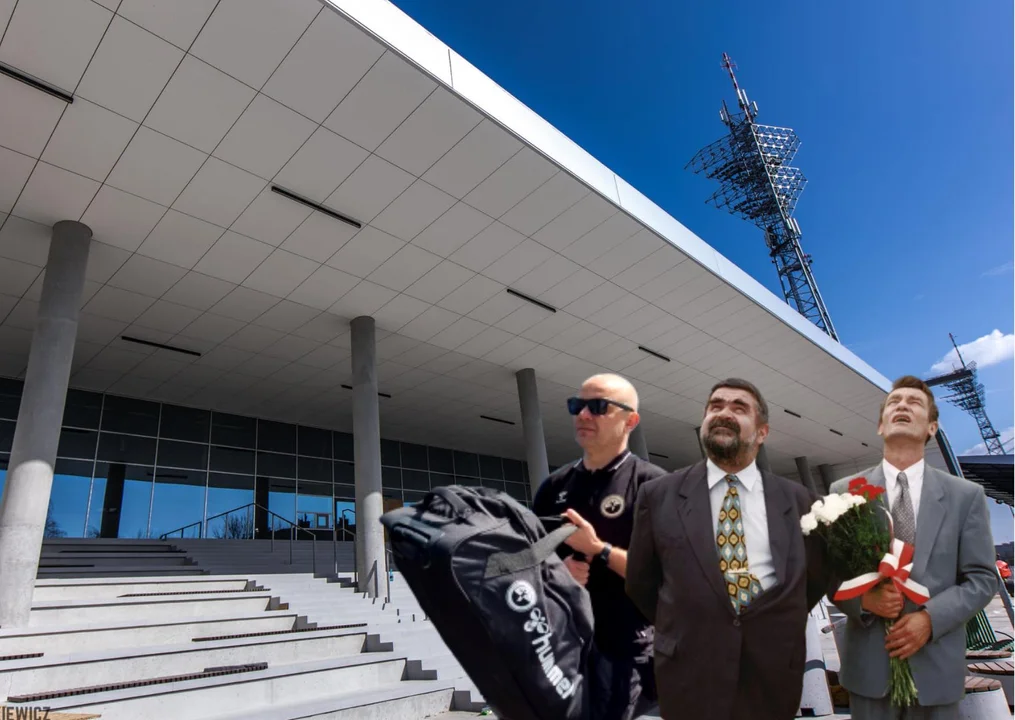 Najpierw mieliśmy fotomontaż. W tle widzieliśmy powstającą halę sportową, a przed nią stali bohaterowie filmu „Kiler-ów dwóch” – Siara i Wąski. Obok nich stał z kolei… Paweł Wilk. Dlaczego on? Dlatego, że jest on szwagrem Adama Babicza.