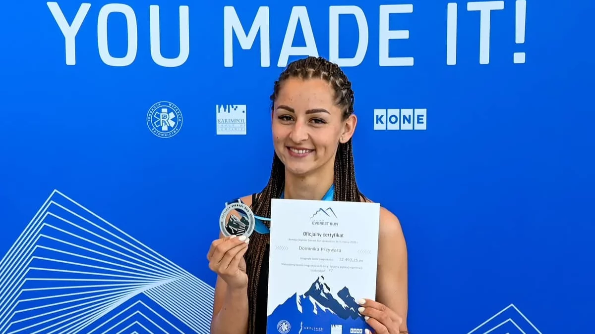 Nadal trudno w to uwierzyć, ale to już fakt! Dominika Przywara stanęła na podium jednego z najbardziej wymagających biegów po schodach w Polsce – Skyliner Everest Run 2025. W zawodach wzięło udział 255 uczestników, którzy przez całą dobę zdobywali 42-piętrowy wieżowiec w Warszawie. Celem wielu z nich było osiągnięcie symbolicznej wysokości Mount Everest (8 848 m), co wymagało 55 wejść. Dominika nie tylko osiągnęła ten pułap, ale go znacznie przekroczyła, zdobywając w sumie 12 483,25 m w pionie!