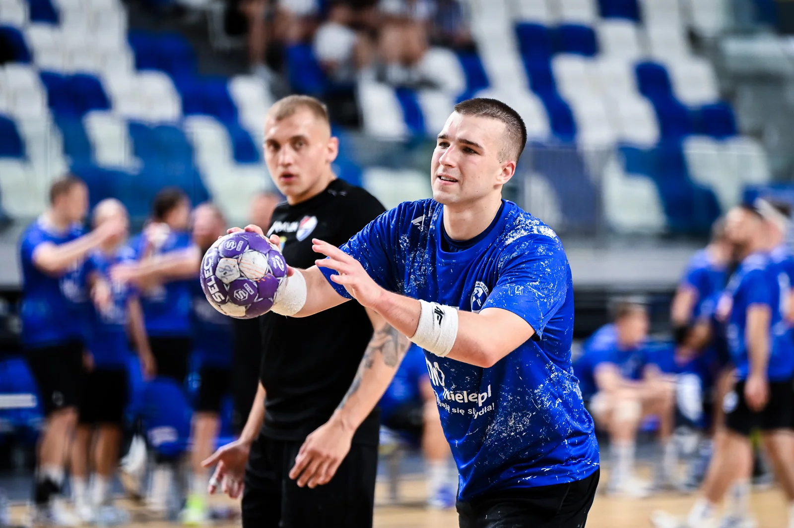 Około 10. minuty gospodarze złapali właściwy rytm i zaczęli wyraźnie dominować. W 11. minucie prowadzili już 7:4, a efektowny lob w wykonaniu Filipa Stefani po kolejnym rzucie karnym ponownie poderwał publiczność. Kluczowy moment pierwszej połowy nadszedł w 15. minucie — faul zawodnika Gwardii, kara dwóch minut i rzut karny dla Stali, który został zamieniony na bramkę. Wynik 11:6 dawał solidną przewagę, a skuteczne interwencje Krystiana Witkowskiego oraz trafienia Jakuba Tokarza jeszcze ją umacniały.