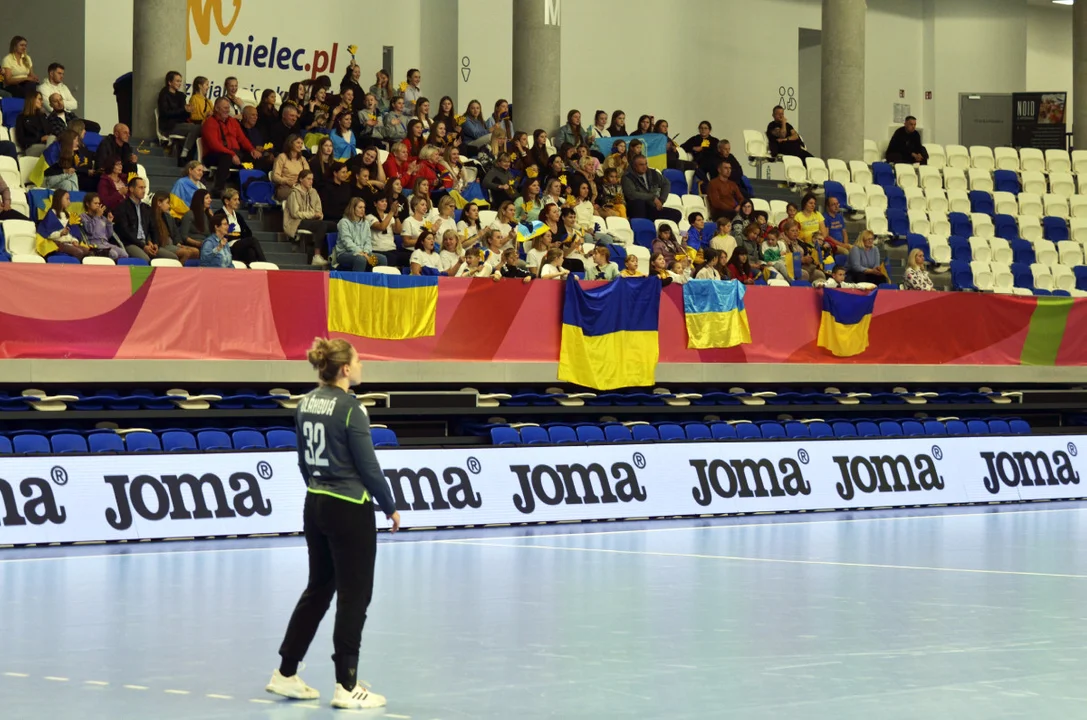 W mecz lepiej weszły Ukrainki, które w tym spotkaniu pełniły funkcję formalnych gospodyń. Już na początku starcia zdołały wyrobić sobie trzypunktową przewagę. Reprezentantki Słowacji starały się gonić wynik i choć udało im się doprowadzić do stanu 8:8, ostatecznie pierwszą odsłonę przegrały 14:9.