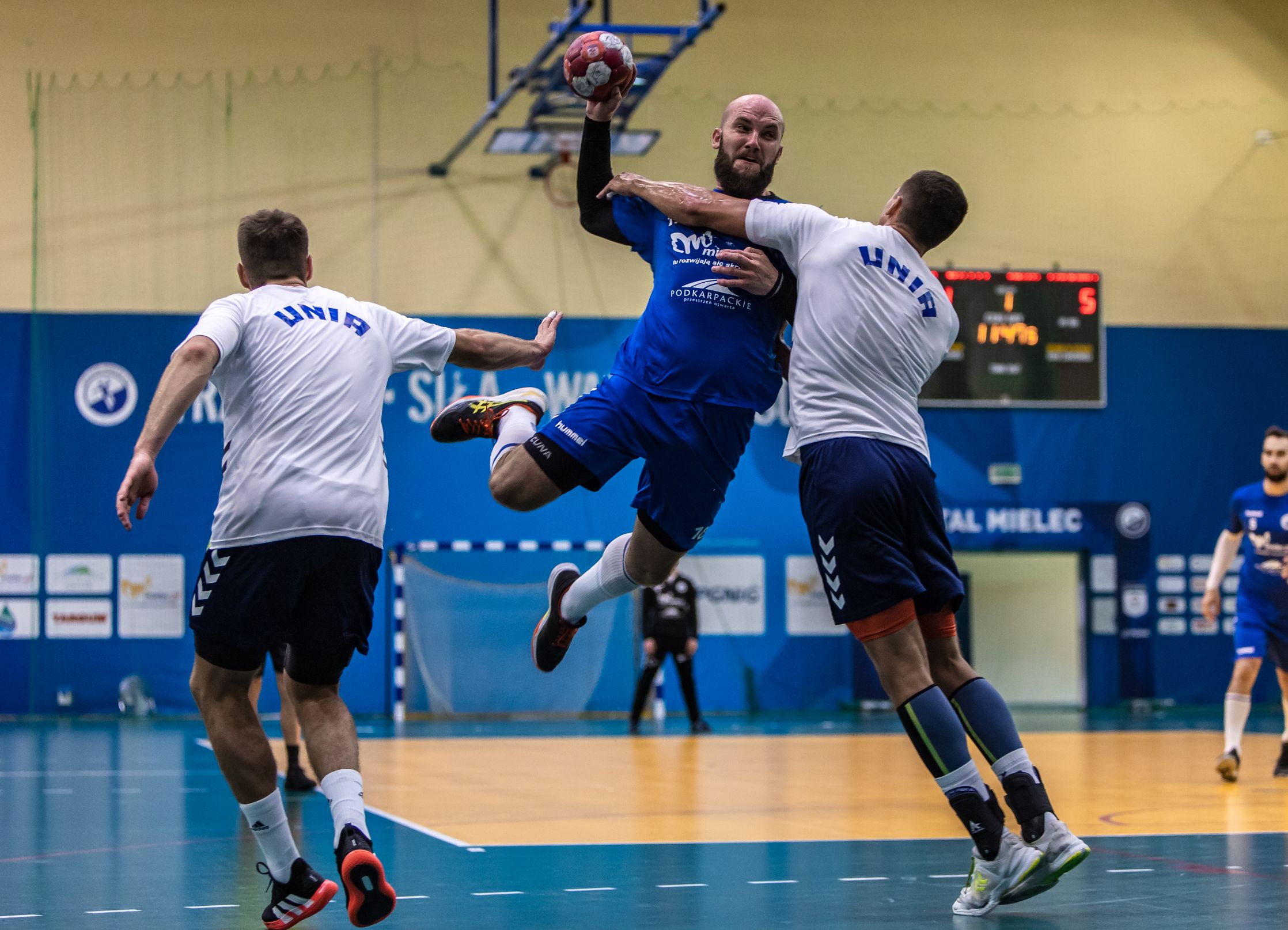 Między 20 a 25 minutą na 5 celnych trafień Unii, Stal zrewanżowała się tylko jedną bramką. Do końca pierwszej połowy utrzymywała się przewaga 4-5 bramek na korzyść gości, przez co na przerwę zeszliśmy z wynikiem 12:16.
