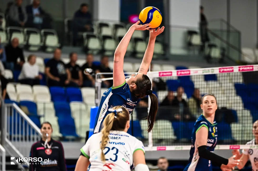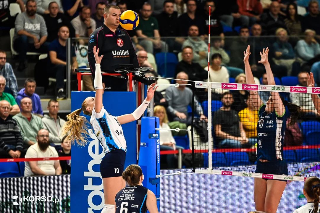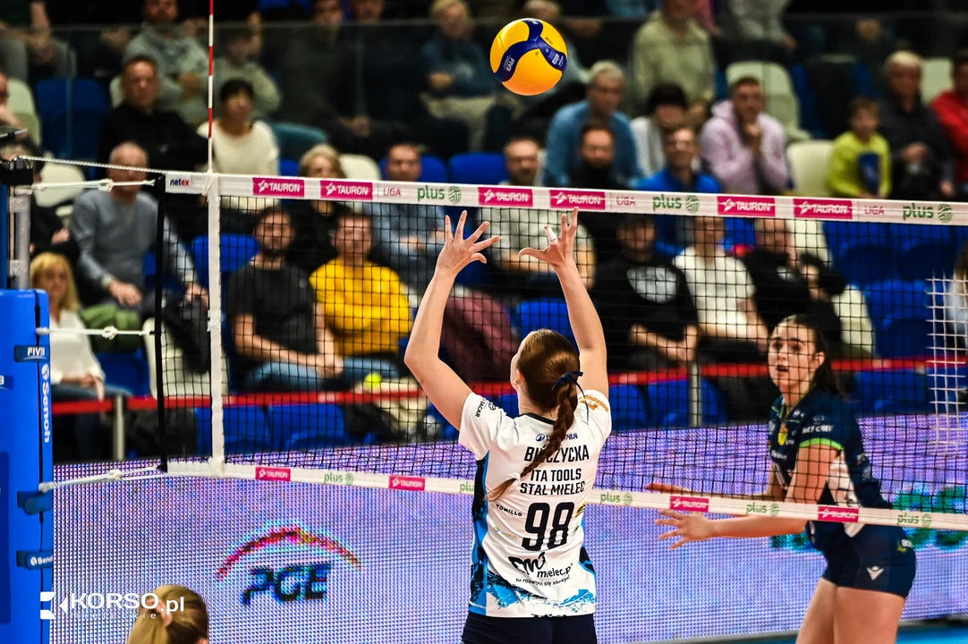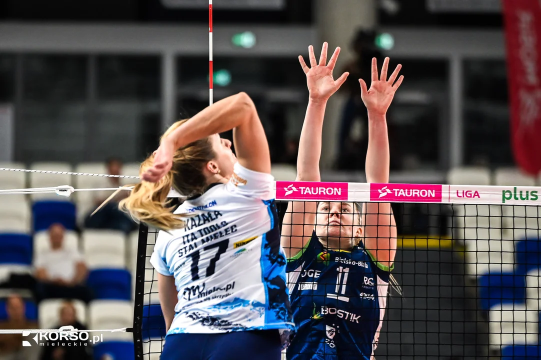 Początek meczu w wykonaniu zawodniczek ITA Tools Stal Mielec był pełen nerwowości. Błędy w ataku i przyjęciu pozwalały rywalkom z Bielska Białej szybko budować przewagę. Po nieudanym ataku Aleksandry Kazały trener Stali, Miłosz Majka, zdecydował się wziąć czas – szybka reakcja, która natychmiast przyniosła efekty. Gospodynie zdobyły trzy punkty z rzędu, zbliżając się do rywalek na 7:8.Mecz był pełen dramaturgii i wideoweryfikacji, które kilkukrotnie zmieniały przebieg spotkania. Szczególnie istotny był moment, gdy po korekcie wyniku z 8:12 na 9:11 stało się jasne, że żadna drużyna nie zamierza odpuścić. Niestety, w pierwszym secie Stal straciła Natashę Calkins, która doznała kontuzji przy stanie 13:12 i musiała opuścić boisko. Na jej miejsce wkracza Bączyńska.