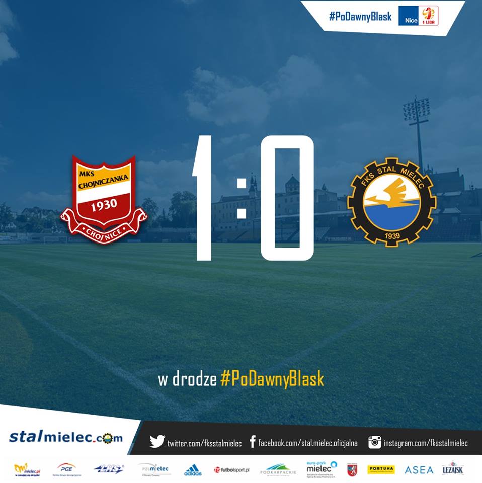 Stal próbowała i próbowała, ale szybko strzelona przez Chojniczankę bramka ustawiła mecz. Już w 10. minucie do siatki mielczan trafił Wojciech Lisowski. Pomimo kilku prób i niezłej gry z naszej strony, wynik nie zmienił się aż do końcowego gwizdka. W tabeli Stal Mielec zajmuje teraz 5. miejsce z dorobkiem 47 punktów. To jeszcze nie koniec szans na awans do Ekstraklasy - do końca sezonu pozostały jeszcze 4 spotkania, a do premiowanego miejsca tracimy trzy punkty.