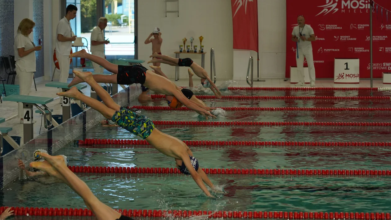 Na zawody przybyło wielu zawodników, a obok nich nie zabrakło trenerów i rodziców. Pływalnia MOSIR zamieniła się w prawdziwe centrum emocji, gdzie panowała niepowtarzalna atmosfera rywalizacji. Z trybun niemal nieustannie dobiegały głośne okrzyki wsparcia, które dodawały młodym pływakom skrzydeł i pomagały im osiągać jak najlepsze wyniki. Trybuny tętniły życiem – rozmowy o pływaniu, o rekordach i osobistych osiągnięciach były na porządku dziennym. To wydarzenie, które na długo pozostanie w pamięci wszystkich uczestników!