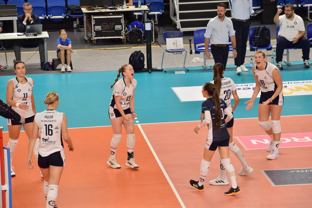Pierwsze minuty meczu były pełne napięcia, a oba zespoły popełniały błędy wynikające z nerwów. Mistrzynie Polski z Chemika Police szybko wyszły na prowadzenie dzięki solidnej grze Julii Hewelt i zagrywkom Martyny Grajber-Nowakowskiej. Jednak gospodynie z Mielca nie dały za wygraną. Emilia Mucha i Pola Janicka przełamały trudne momenty, a coraz lepsza skuteczność w ataku pozwoliła mielczankom wyjść na prowadzenie i zamknąć pierwszego seta wynikiem 25:19.