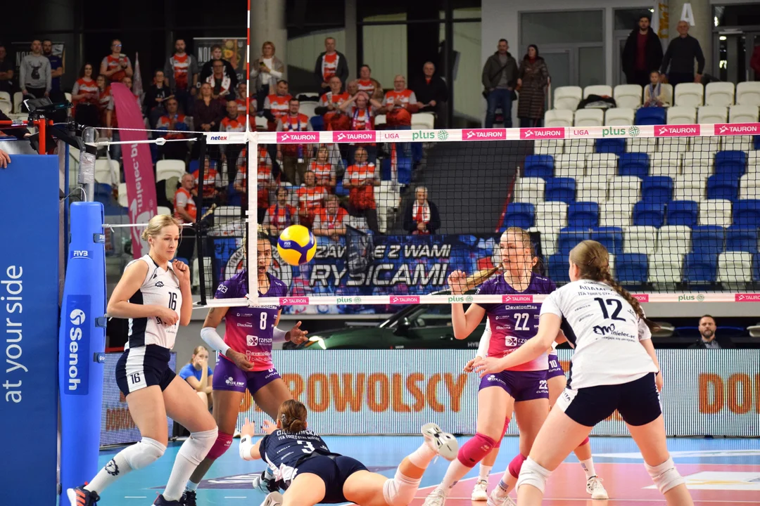 Trzeci set był równie wyrównany, co pierwszy. Mielczanki prowadziły 10:7 po skutecznych atakach Oliwii Sieradzkiej, ale DevelopRes dzięki doświadczeniu i solidnej grze w bloku odrobił straty. Końcówka ponownie była niezwykle zacięta, jednak rzeszowianki zachowały chłodną głowę, wygrywając 25:23 i kończąc mecz asem serwisowym.
