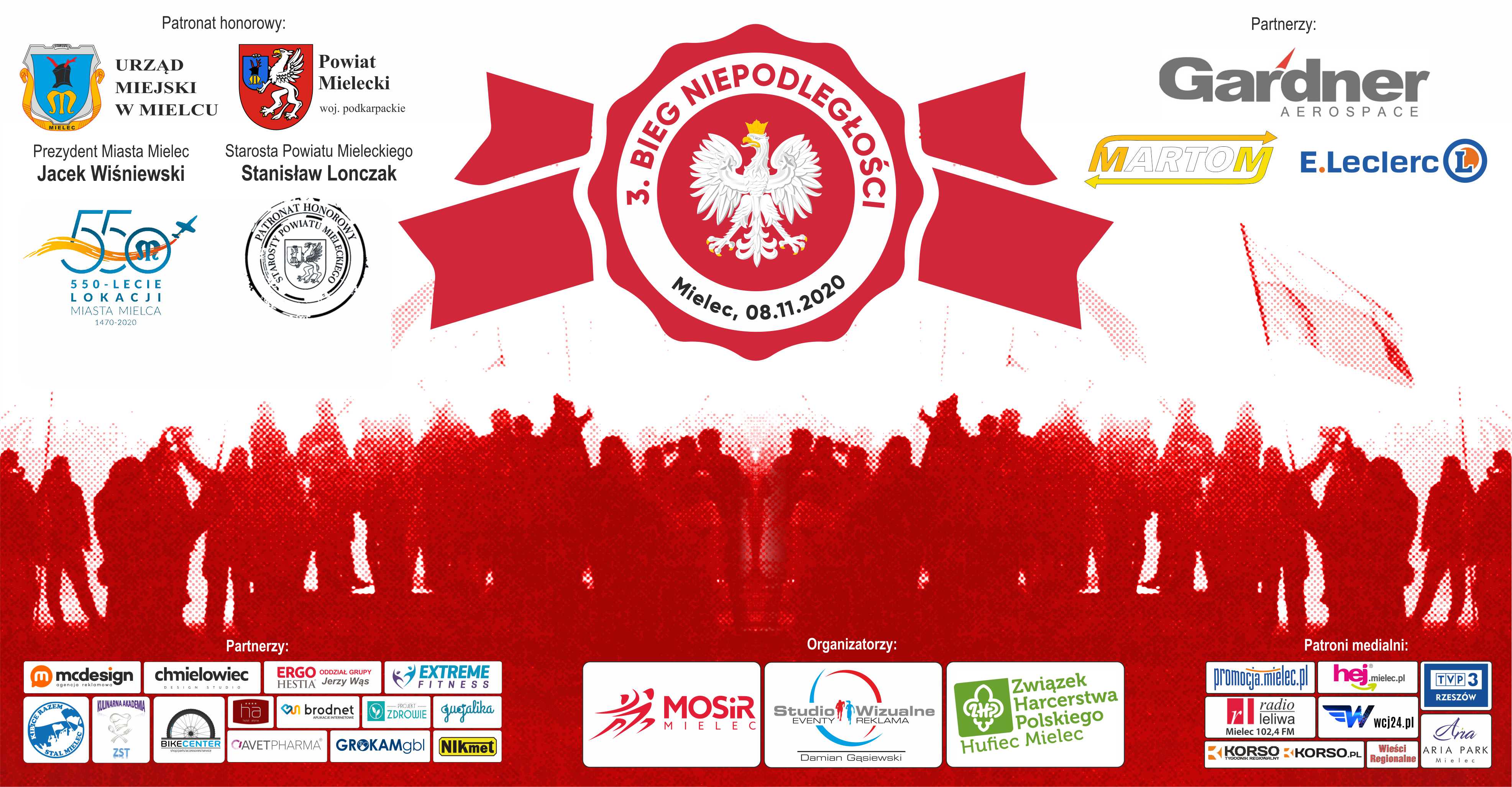 Patronat honorowy nad biegiem objęli Prezydent Miasta Mielec Jacek Wiśniewski oraz Starosta Powiatu Mieleckiego Stanisław Lonczak.