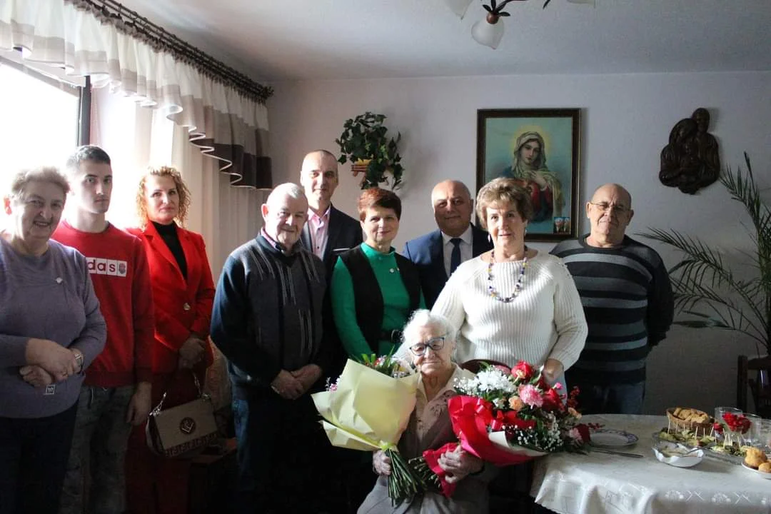 Dostojnej jubilatce życzenia złożył Wójt Gminy Mielec Józef Piątek i kierownik GOPS Mirosław Jaworski, którzy w imieniu własnym oraz wszystkich mieszkańców gminy Mielec życzyli jubilatce dalszych lat w zdrowiu, radości i pogody ducha.