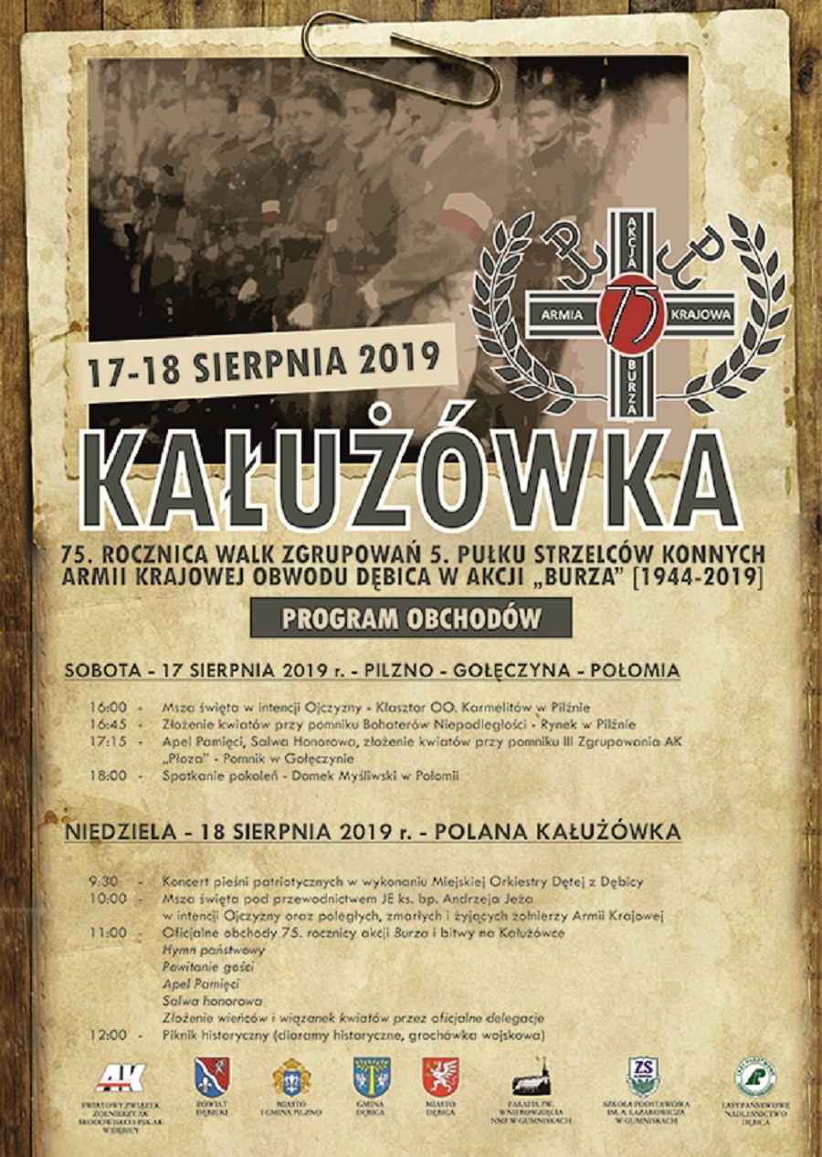 11:00 – Oficjalne obchody 75. rocznicy akcji Burza i bitwy na Kałużówce