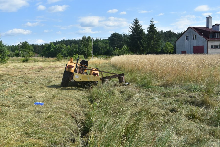 Na miejsce pojechały służby ratunkowe. Ranny 50-latek został przetransportowany helikopterem do szpitala. Jak ustalili policjanci mężczyzna prawdopodobnie wjechał ciągnikiem w rów i ratując się zeskokiem z pojazdu wpadł pod jedno z kół traktora.
