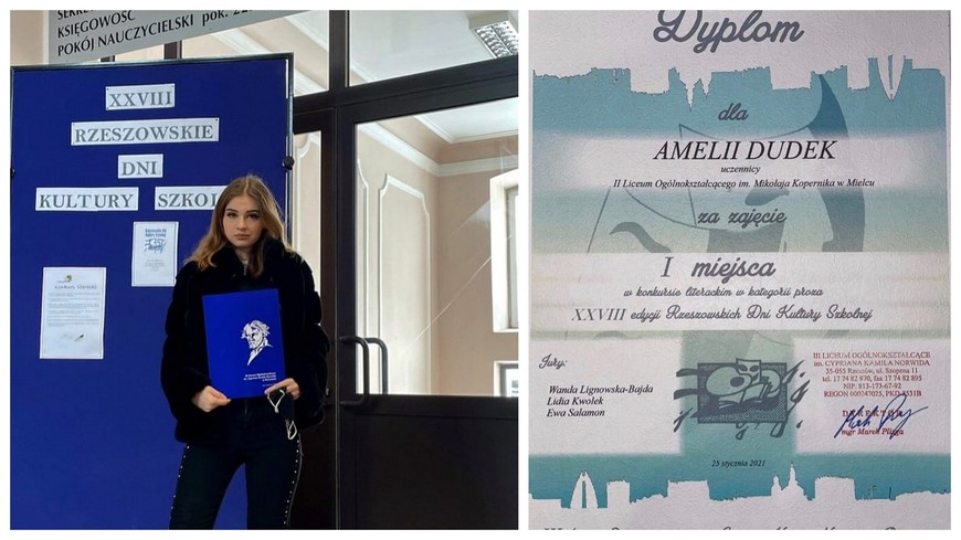WiadomościAmelia Dudek, uczennica klasy 2E z II Liceum Ogólnokształcącego, zdobyła pierwszą nagrodę w XXVIII edycji wojewódzkiego konkursu literackiego.