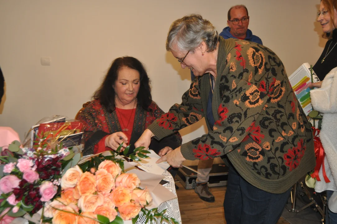 Z wielkim entuzjazmem spotkał się również pan Józef. Na spotkanie z nim i jego autograf czekały osoby z tomikiem wierszy w ręku. Zdjęcie z panią Ania i również autograf w książce to marzenie wielu osób obecnych na wieczorku poetyckim.