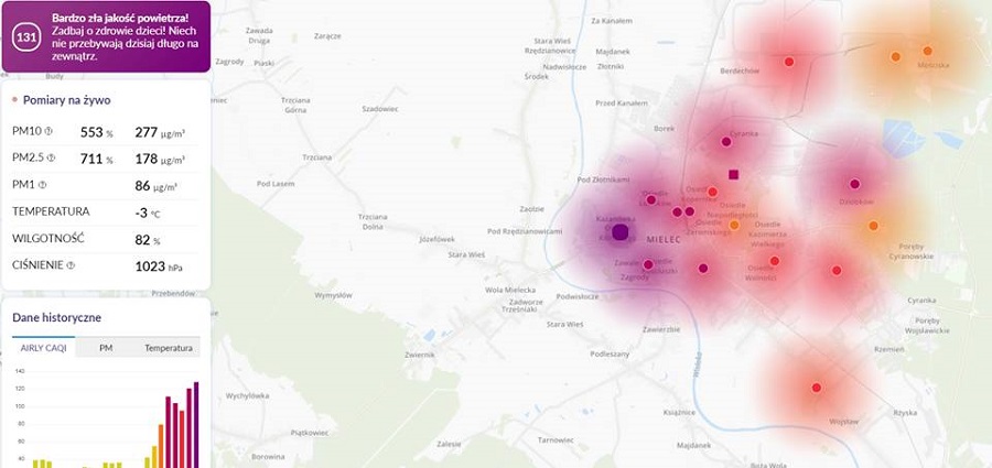 Sytuacja dotyczy praktycznie całego miasta. Rozpoczął się sezon grzewczy i mieszkańcy rozpalili domowe piece. Połączenie niskiej emisji z zanieczyszczeniami przemysłowymi z zakładów z terenu strefy powoduje, że obecnie powietrze w Mielcu jest bardzo złe.