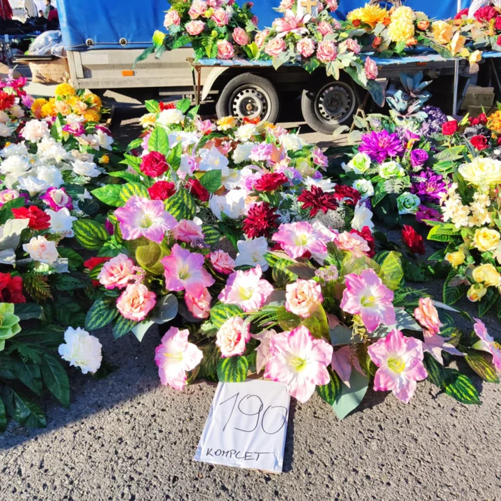 Oprócz żywych kwiatów, ogromnym zainteresowaniem cieszyły się również sztuczne kompozycje, które zdaniem wielu kupujących są bardziej praktyczne i trwałe, zwłaszcza w zmiennych, jesiennych warunkach pogodowych. Kwiaty wykonane z wysokiej jakości materiałów, imitujące chryzantemy, róże czy lilie, były dostępne w rozmaitych wzorach, a ich ceny zależały od wielkości.