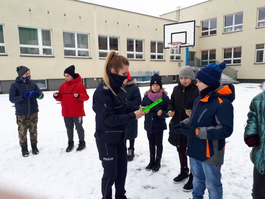 Policjanci spotykali się również z dziećmi tam, gdzie organizowane były kilkugodzinne zajęcia świetlicowe. Spotkania odbywały się w zimowej aurze, przeważnie na wolnym powietrzu i przybierały różne formy, od pogadanek aż po tematyczne konkursy. Funkcjonariusze odwiedzili między innymi: SP nr 8 przy ulicy Tańskiego, SP nr 1 przy ulicy Kilińskiego, SP nr 3 przy ulicy Żeromskiego, SP nr 13 przy ulicy Łąkowej, SP nr 9 przy ulicy Drzewieckiego w Mielcu oraz Szkołę Podstawową w Przecławiu. Uczestnicy spotkań, którzy najaktywniej uczestniczyli w policyjnych pogadankach zostali nagrodzeni drobnymi upominkami w postaci opasek odblaskowych.