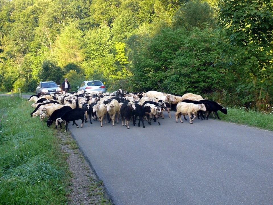 WiadomościCzęść owieczek zeszła z połonin i całym stadem maszerowała przez bieszczadzką drogę zatrzymując ruch w Brzegach, Nasicznym i Smolniku.