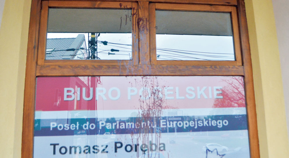Policjanci rozpoczęli czynności mające na celu wyjaśnienie tego zdarzenia. Na razie wiadomo jedynie, że nieznany sprawca oblał czerwoną farbą okno i elewację budynku, w którym znajduje się biuro europosła Poręby. Według ustaleń mieleckiej policji do zdarzenia doszło 3 maja w godzinach popołudniowych. Szkody oszacowane zostały na prawie 1500 złotych. - Pan poseł nie komentuje tej sprawy - poinformowała nas Katarzyna Ochman-Kamińska, asystent medialny Tomasza Poręby. Warto dodać, że samo biuro jest także siedzibą lokalnych struktur Prawa i Sprawiedliwości. Do tej pory w tym miejscu nie dochodziło do żadnych aktów wandalizmu.