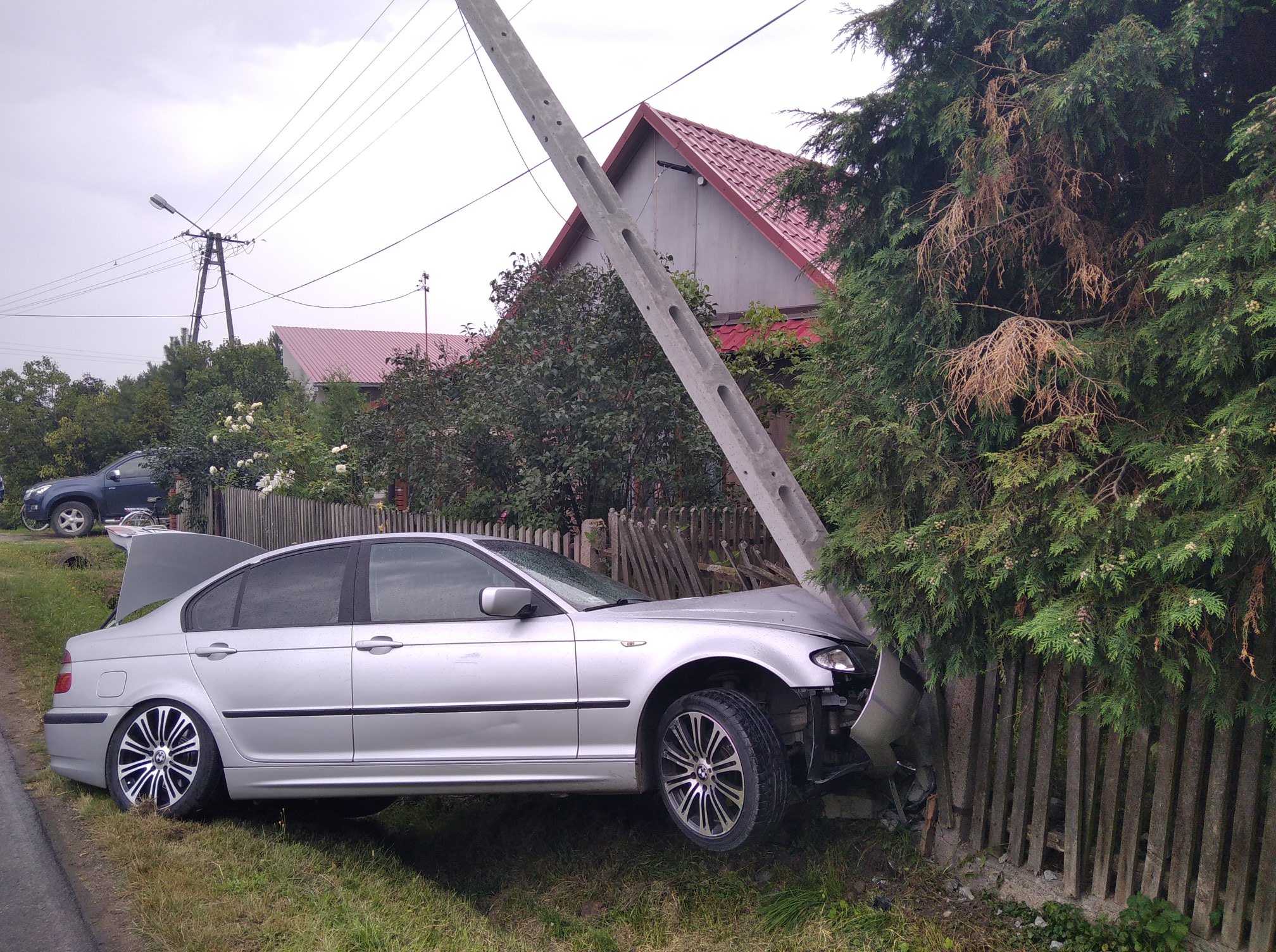 Jak ustalili policjanci, kobieta kierująca samochodem marki BMW E46 straciła panowanie nad pojazdem. Auto wypadło z drogi i uderzyło w słup. W wyniku zdarzenia nikt nie został ranny.