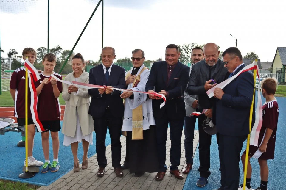 - Tych pięknych, oczekiwanych przez uczniów i mieszkańców obiektów nie byłoby, gdyby nie zaangażowanie wielu osób: dyrekcji i nauczycieli, radnych, lokalnych liderów, sołtysów, pracowników Urzędu Gminy. Szczególnie ważne było włączenie się w realizację inwestycji księdza proboszcza Wiesława Koniora, który umożliwił jej realizację na terenie należącym do parafii. Pragnę dzisiaj wyrazić ogromną wdzięczność europosłowi Tomaszowi Porębie, bez którego pomocy prawdopodobnie nie zrealizowalibyśmy tego zadania. To głównie dzięki jego staraniom otrzymaliśmy dotację z Ministerstwa Sportu. Dziękuje wiceministrowi Jackowi Osuchowi, który ma również swój duży udział w tym zadaniu. Niech te wspaniałe boiska służą dzieciom, młodzieży i nam wszystkim – zaznacza wójt gminy Andrzej Głaz.