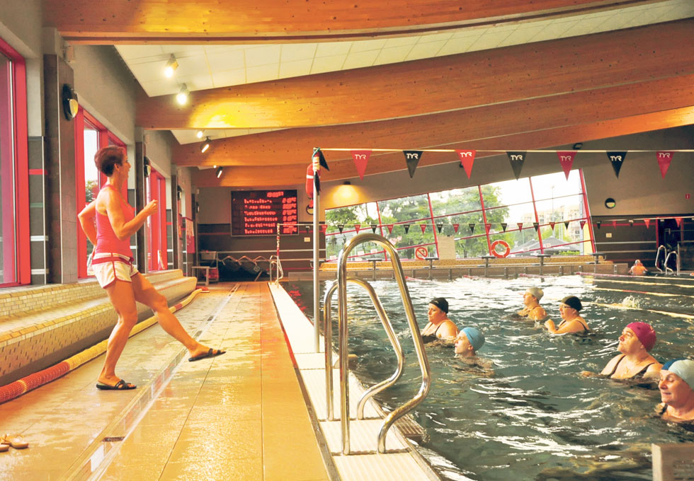 Są to zajęcia absolutnie dla wszystkich. Osoby, które z różnych przyczyn nie mogą korzystać z dobrodziejstw klasycznej sali do ćwiczeń, zapraszam na aqua aerobik. Tutaj każdy ruch ciała w wodzie jest treningiem – gibkościowym, wytrzymałościowym, dodatkowo świetnie niweluje cellulit. Na tych zajęciach jest wiele osób w średnim i starszym wieku. Często bywa tak, że przychodzi mama z córką albo to córka przyprowadza swoją mamę, tak dla zachęty. Ostatnio pojawiło się także małżeństwo, ale mężczyzna na fitnessie to jednak wciąż rzadki widok. Panowie traktują to raczej jako mało męskie zajęcie.