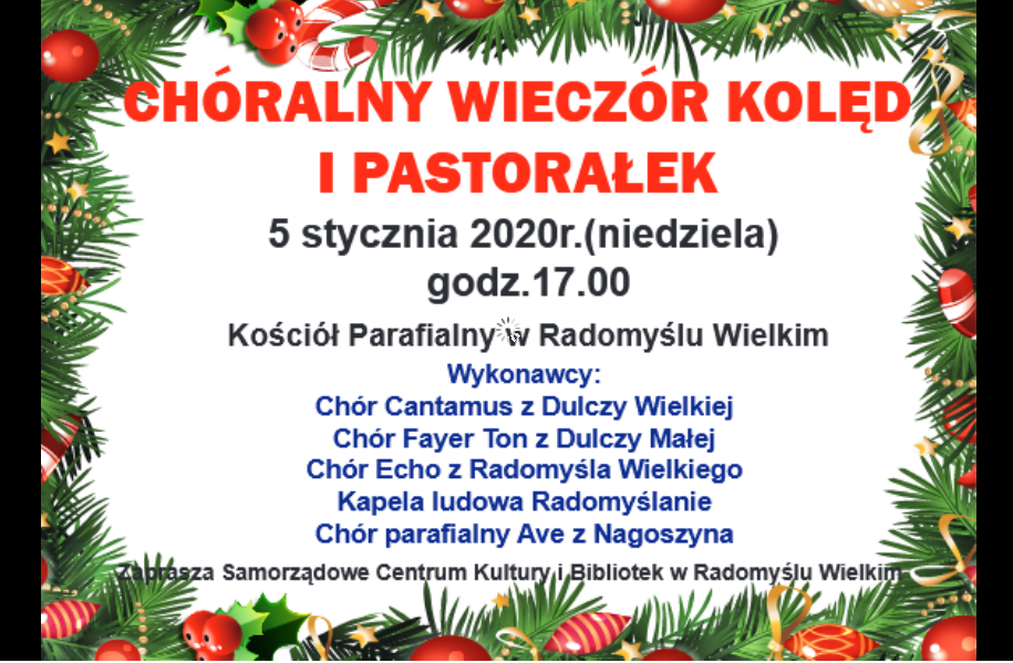 Podczas wydarzenia wystąpią: chóry Cantamus z Dulczy Wielkiej, Fayer Ton z Dulczy Małej, Echo z Radomyśla Wielkiego, kapela ludowa Radomyślanie i chór parafialny Ave z Nagoszyna.