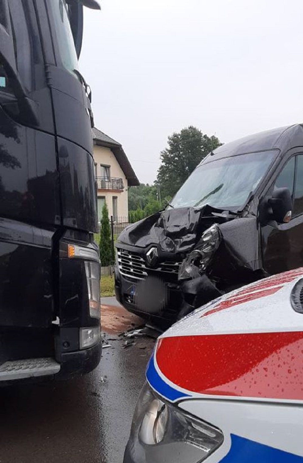 W wyniku wypadku dwie osoby zostały poszkodowane i zabrane do szpitala przez zespół ratownictwa medycznego. Droga powiatowa jest zablokowana.