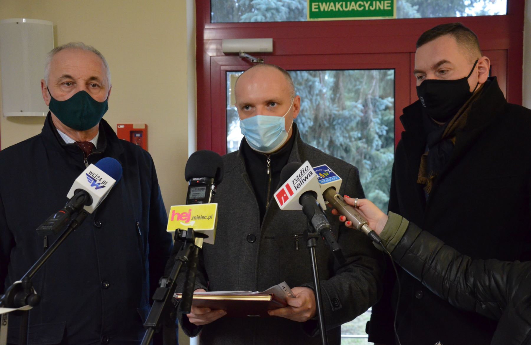 W briefingu prasowym związanym z lokalizacją stacji przeładunkowej odpadów komunalnych w centrum mieleckiej Specjalnej Strefy Ekonomicznej udział wzięli radni klubu Prawa i Sprawiedliwości Rady Miejskiej w Mielcu: Robert Wójcik, Krzysztof Szostak i Marian Kokoszka.