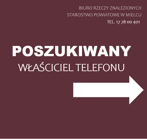 Właściciela telefonu prosimy o kontakt z Biurem Rzeczy Znalezionych, ul. Wyspiańskiego 6 w Mielcu, pokój 215 / tel. 017 78 00 401.