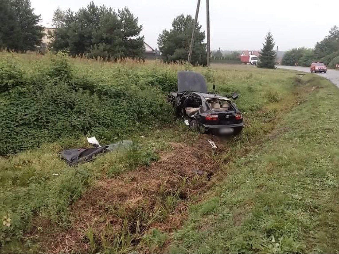 Do zdarzenia doszło po godzinie 7 na drodze powiatowej relacji Przyłęk-Cmolas. W pobliżu zakładu kamieniarskiego. Ze wstępnych ustaleń policji wynika, że 38-letni mieszkaniec powiatu kolbuszowskiego na łuku drogi stracił panowanie nad samochodem, wjechał do rowu, a następnie dachował.