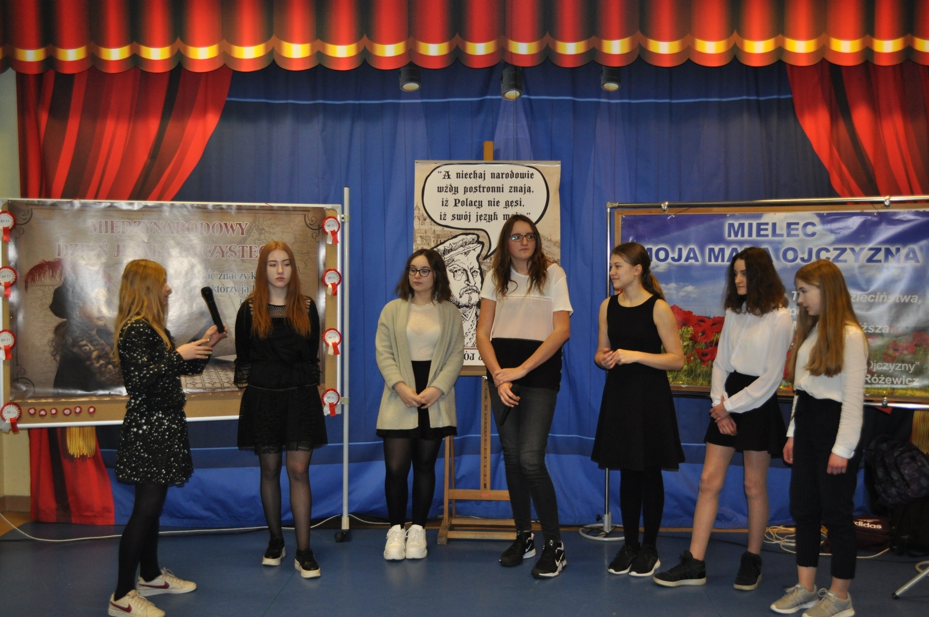 Słowami polskich pisarzy, poetów, przy melodii Szopena, dźwiękach akordeonu, melodiami pieśni patriotycznych, scenkami informującymi o konieczności propagowania idei pięknej i bezbłędnej mowy ojczystej, uczniowie z klasy 8c, 5e ,7c rozważali historię oraz znaczenie polskiej mowy. Dopełnieniem prezentowanych treści stała się współgrająca z przekazywanym słowem dekoracja sali.