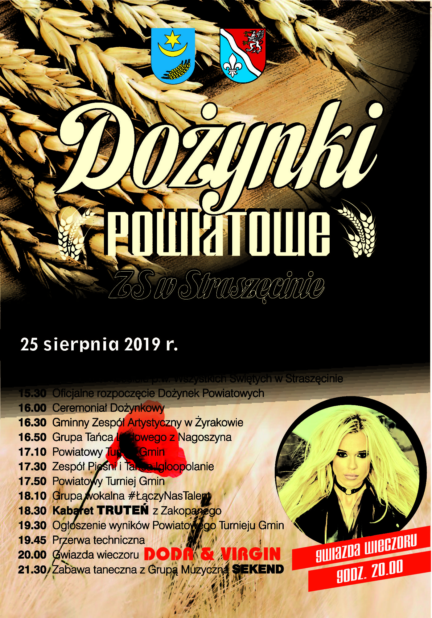 WiadomościW niedzielę 25 sierpnia podczas Dożynek Powiatowych 2019 w Straszęcinie wystąpią między innymi: Doda z zespołem Virgin oraz zakopiański kabaret „Truteń”