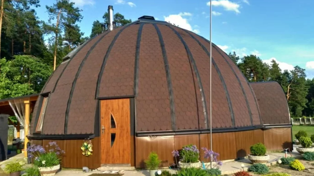 Za projektem i budową kopuły stoi Mikołaj Jachym – stolarz z wieloletnim doświadczeniem, który postanowił zrealizować niecodzienny pomysł własnymi rękami. Średnica głównej kopuły to 10,5 metra. Obok znajduje się mniejsza – pełni dziś funkcję spiżarni i składziku, a pierwotnie była „modelem testowym” przed budową docelowego domu.