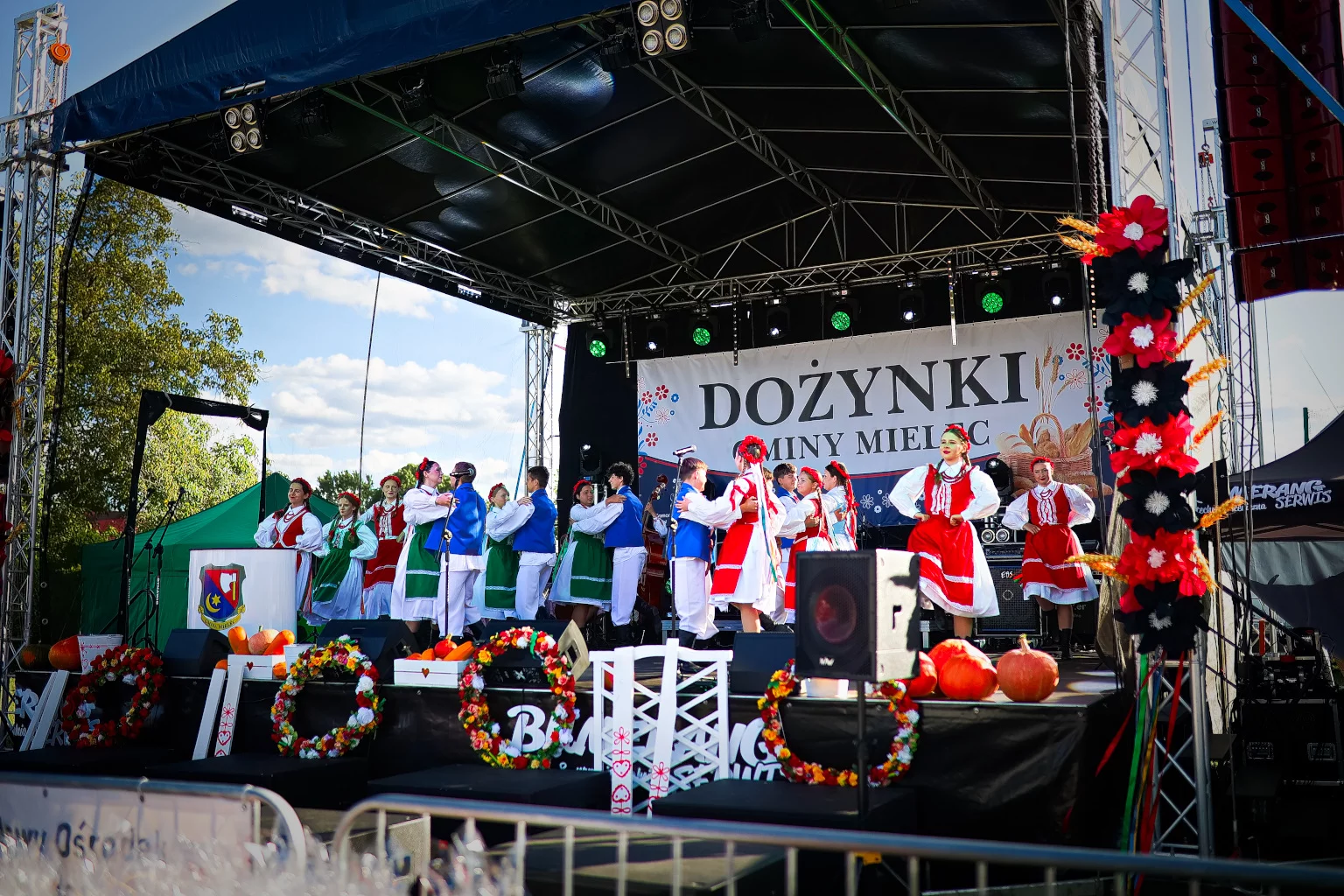 Jednym z najbardziej wyczekiwanych momentów był przegląd wieńców dożynkowych, przygotowanych przez sołectwa gminy Mielec. O godz. 16:00 barwne, misternie wykonane konstrukcje – prawdziwe dzieła sztuki ludowej – wzbudziły zachwyt wśród publiczności. Każdy wieniec miał swój charakter, a jednocześnie wszystkie łączyły symbolikę wdzięczności za chleb i plony.