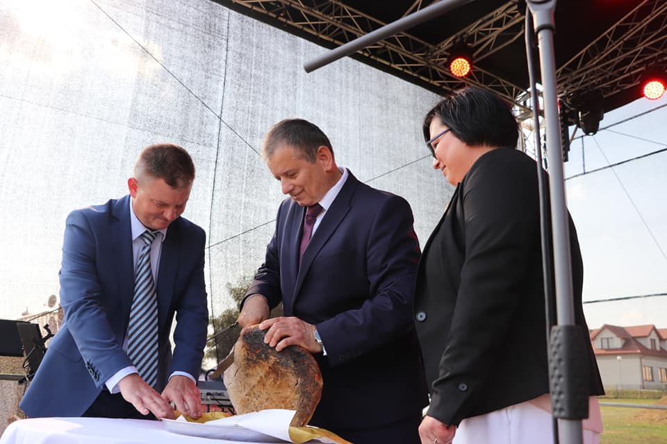 Starostowie dożynek wraz ze starostą mieleckim dokonali dożynkowego ceremoniału. Chleb - jako symbol tegorocznych zbiorów - został pokrojony i rozdany wśród zgromadzonych gości. Reprezentacje wszystkich gmin powiatu przygotowały swoje stoiska z potrawami regionalnymi.