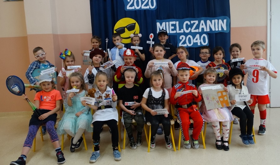 Realizacja tematu została podsumowana podczas popołudnia zabaw i gier „Przedszkolak 2020 – Mielczanin 2040”. Rodzice inspirując się marzeniami swoich dzieci przygotowali stroje nawiązujące do zawodów, jakie dzieci chciałyby wykonywać będąc dorosłym mieszkańcem miasta Mielca.