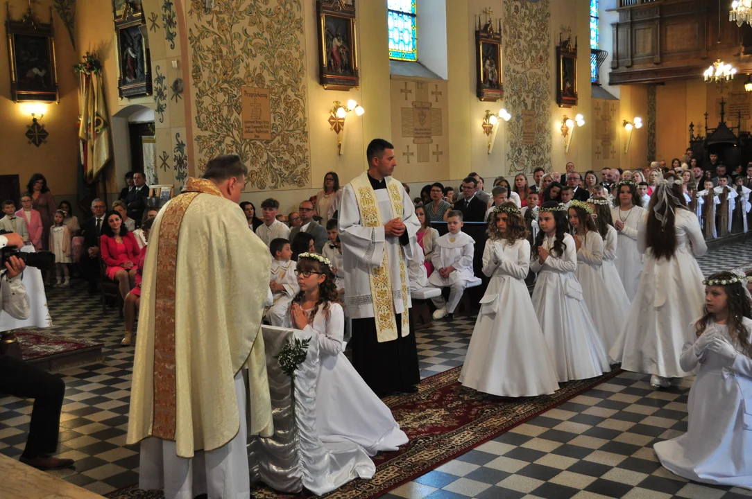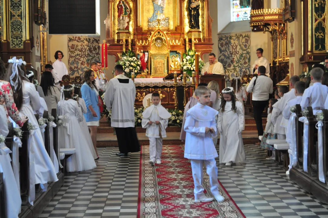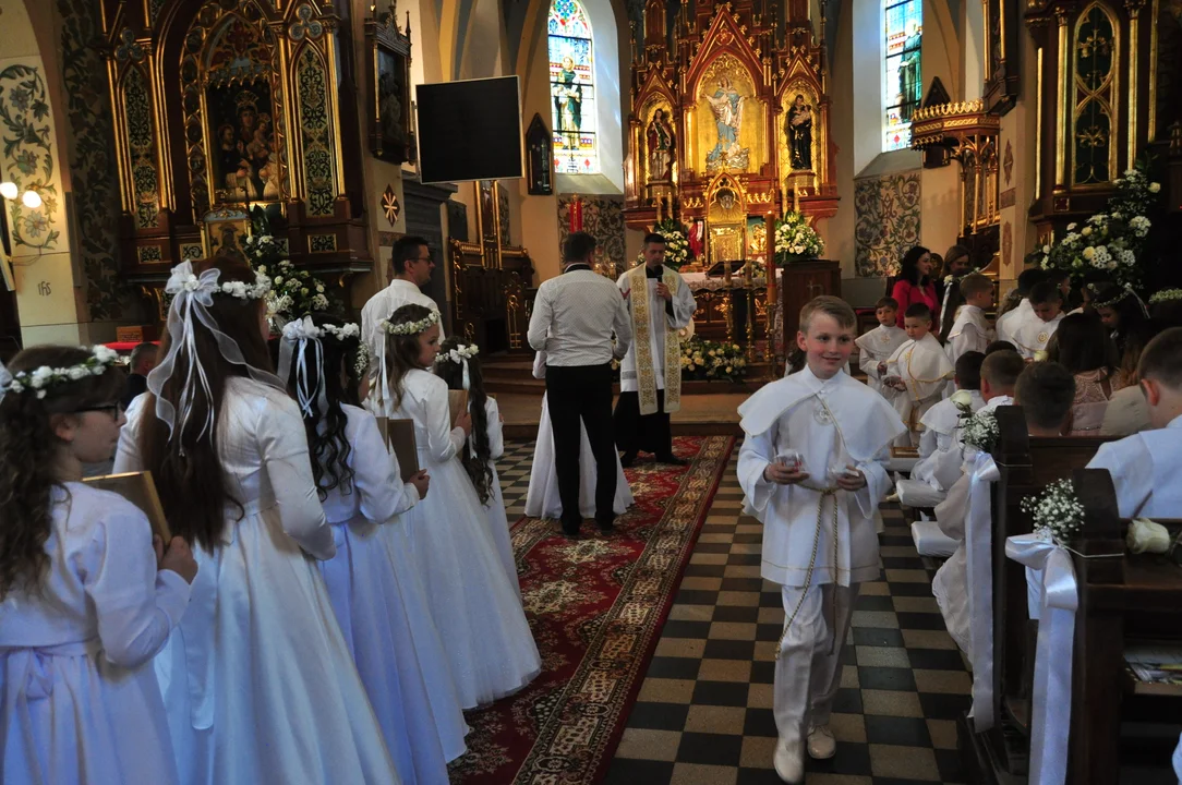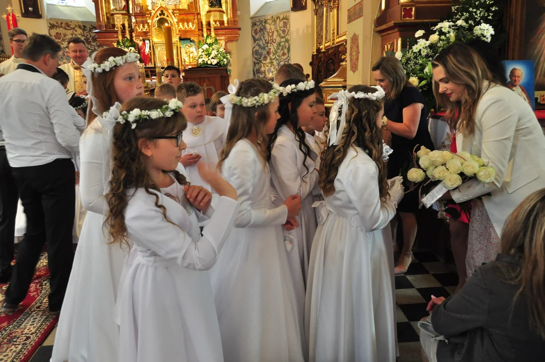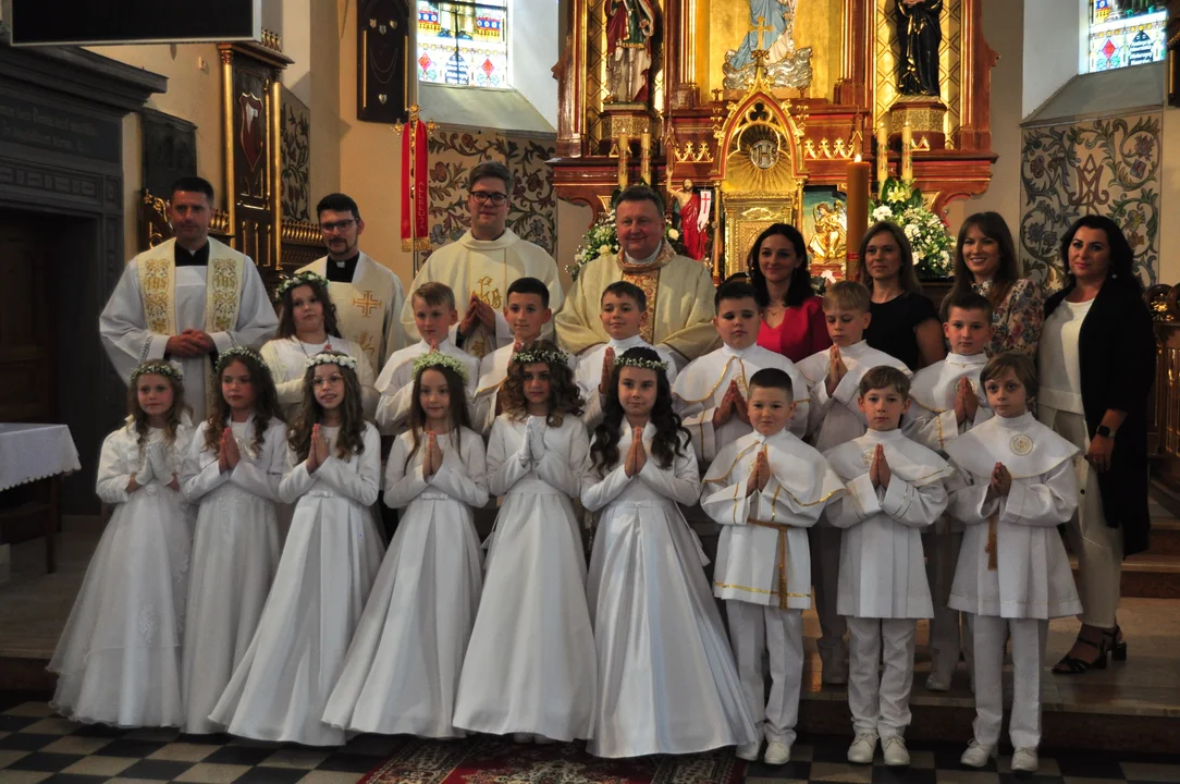Wyjątkowe chwile komunijne należały również do dzieci, uczęszczających do Zespołu Szkolno- Przedszkolnego w Tuszymie. Uroczystość rozpoczęła się o godz. 12 w sootę 11 maja w Kościele pw. Wniebowzięcia Najświętszej Marii Panny w Przecławiu.