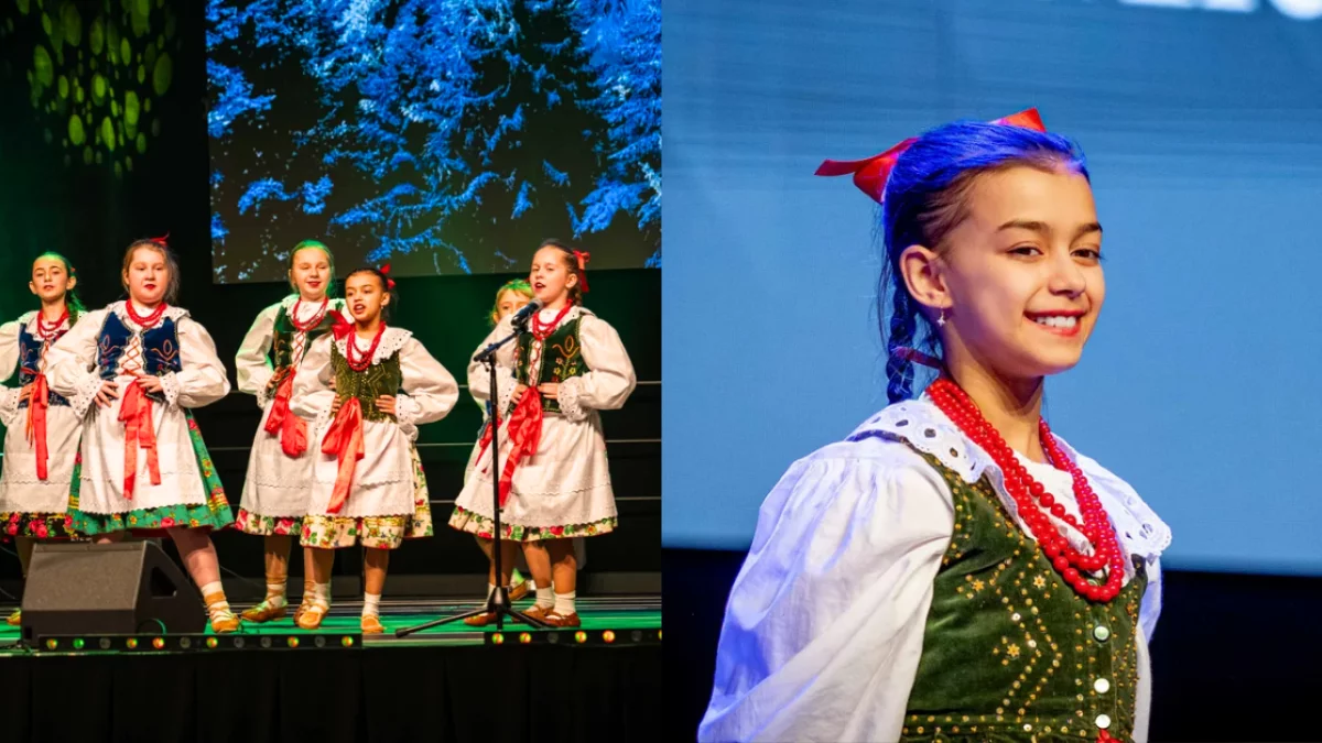 Młodzi artyści pojawili się na scenie w tradycyjnych strojach ludowych, wzbudzając duże zainteresowanie i sympatię widowni. Występ oparty był na ludowych śpiewankach oraz tańcach nawiązujących do lokalnego folkloru, co nadało gali wyjątkowy charakter i podkreśliło przywiązanie do regionalnych tradycji.