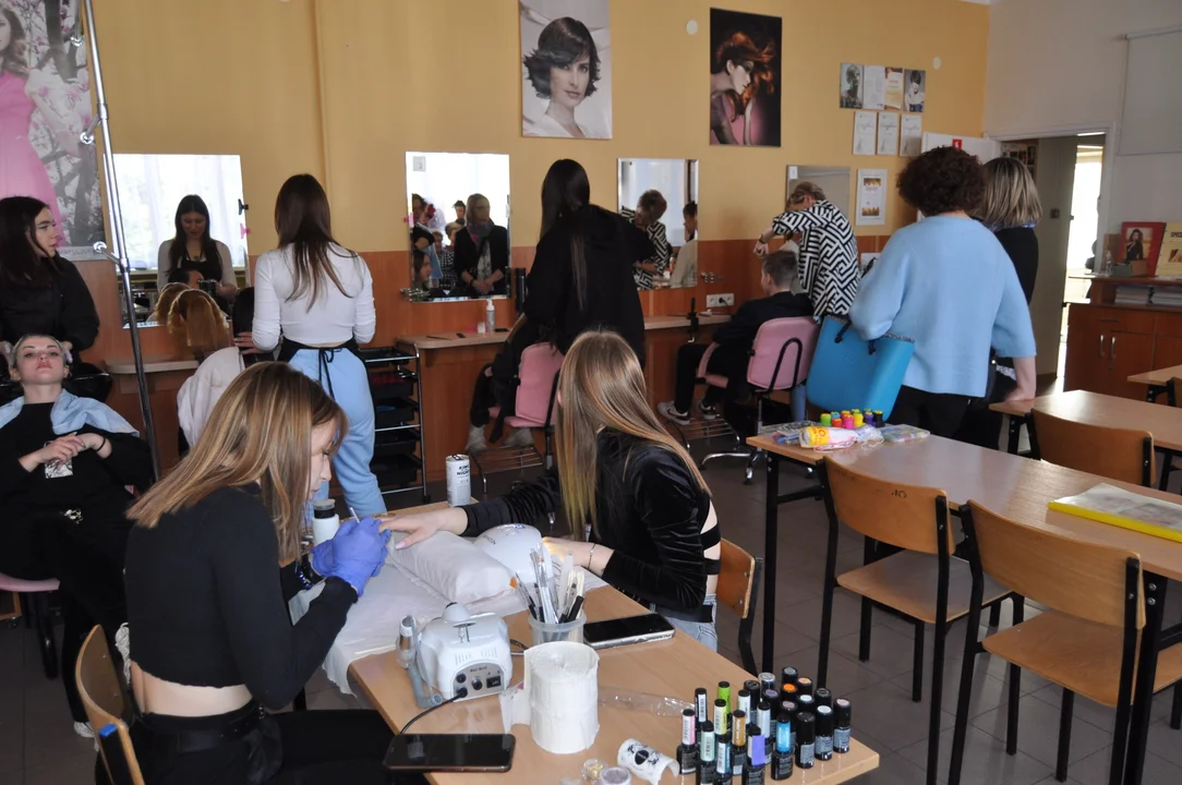 Uczniowie z ochotą działają na dostępnych im sprzętach, a jest co oglądać i na czym pracować. Mimo nie osiągniętych miejsc zwycięskich uczestnicy konkursu, a szczególnie uczestniczki skorzystały z usług w pracowni fryzjerskiej, a panowie mogli poćwiczyć strzelanie trzymając inne narzędzie w ręku niż grzebień, z którym czuli sie dużo pewniej.