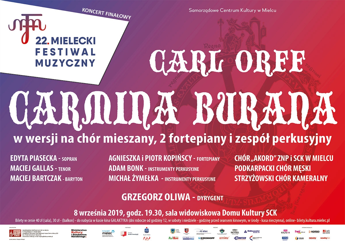 Jutro, 8 września o 19:30 w Domu Kultury SCK zabrzmi „CarminaBurana” – opera sceniczna Karla Orffa w wersji na chór mieszany, 2 fortepiany i sekcję perkusyjną.