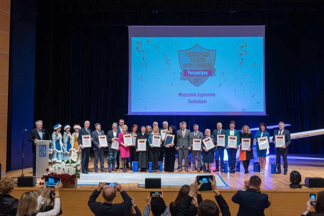 Następnie odbyła się najważniejsza część uroczystości - wręczenie dyplomów najlepszym liceom i technikom województwa podkarpackiego. Gratulując wyróżnionym szkołom, rektor Politechniki Rzeszowskiej prof. Piotr Koszelnik podkreślił, że dla uczelni to dla nas zaszczyt gościć w swoich murach grono pedagogiczne i uczniów najlepszych szkół, którzy będą niebawem wybierać swoją dalszą drogę edukacyjną.