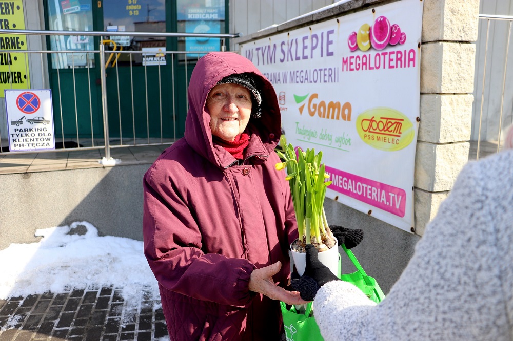 Sadzonki wiosennych żonkili otrzymali klienci, którzy w środowy poranek pojawili się w urzędzie przy ul. Wyspiańskiego oraz mieszkańcy załatwiający sprawy w Wydziale Komunikacji przy ul. Sękowskiego. Kolorowych podarków nie brakło również dla pozostałych mieszkańców powiatu. Przedstawiciele Biura Promocji i Informacji mieleckiego starostwa pojawili się na najbardziej ruchliwych ulicach w mieście z koszami pełnymi kwiatów. Te szybko trafiły do rąk zaskoczonych akcją przechodniów.