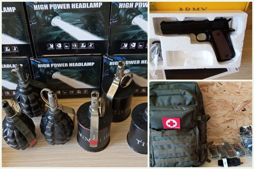 W skład zakupionego za ponad 63 tys. złotych asortymentu weszły m.in.: kamizelki taktyczne, gumowe atrapy karabinka, pasy nośne, hełmy ochronne, kompasy, okulary ochronne, maski ochronne ASG i przeciwgazowe, saperki, nosze medyczne, przybory do walki wręcz, lornetki, latarki czołowe, noże typu wojskowego, kurtki zimowe, radiotelefony, repliki pistoletów i granatów ręcznych czy makiety broni szkoleniowej.