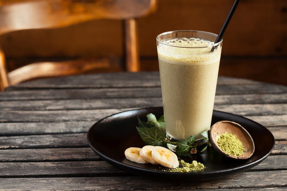 Koktajl bananowy z jarmużem i herbatą matcha