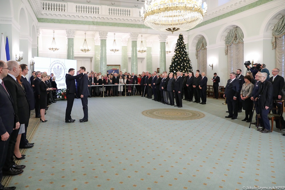 – Z całego serca dziękuję – mówił do odznaczonych Prezydent, dodając, że jest to dla niego wzruszająca uroczystość. – Dlatego, że jesteście Państwo pokoleniem moich rodziców. To dla mnie ogromny zaszczyt, że mogę na Państwa piersi w imieniu Rzeczypospolitej Polskiej zawiesić te zasłużone odznaczenia za to, że my, następne pokolenie, jesteśmy wolni, że większość naszego życia żyjemy w wolnej Polsce, jesteśmy swobodni, możemy podróżować po świecie – zaznaczył.