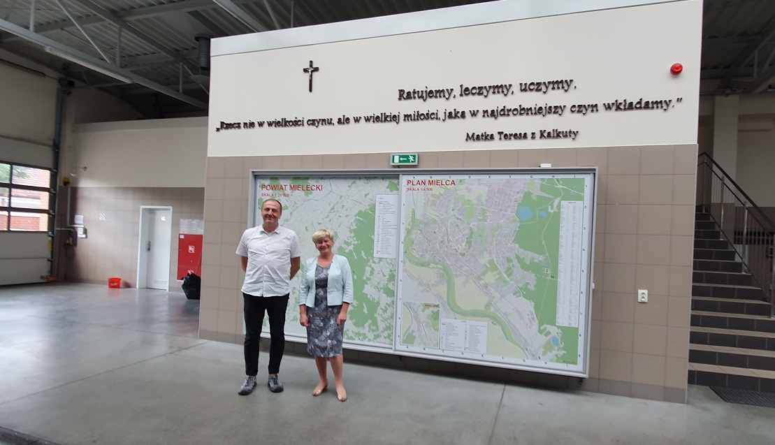 Miejsce, w którym zainstalowano mapy okazało się także idealne, aby wyeksponować kilka motywujących słów. Inspiracją był podarunek, jaki pogotowie otrzymało od Parafii p.w. Matki Bożej Nieustającej Pomocy w Mielcu.