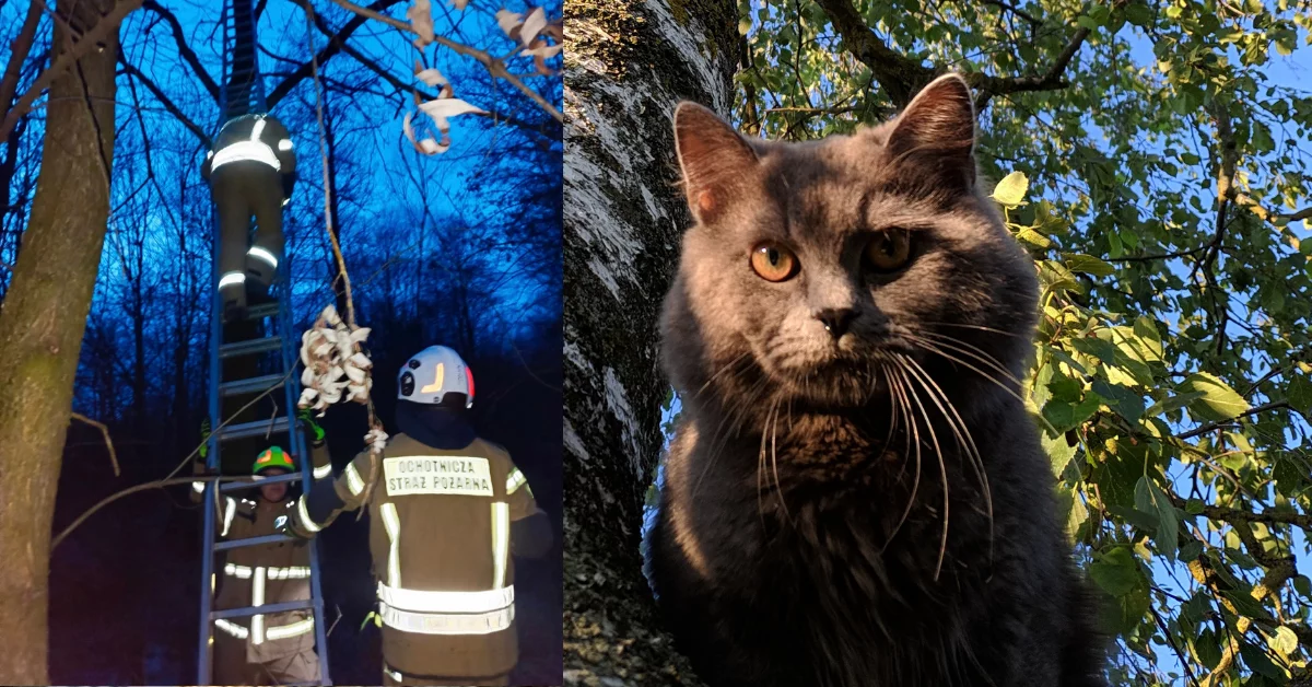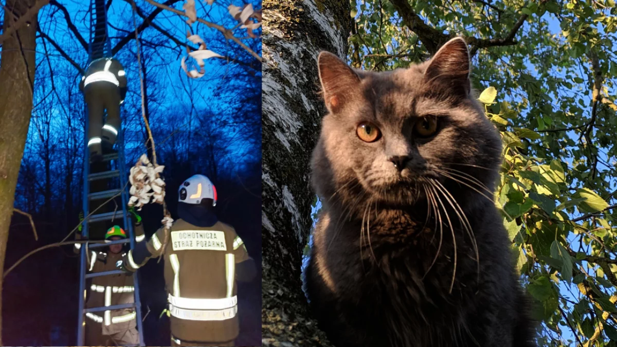 Po przybyciu na miejsce ratownicy szybko ocenili sytuację i przystąpili do działania. Z wykorzystaniem drabiny dotarli do przestraszonego zwierzęcia, bezpiecznie zdjęli je z wysokości. Cała akcja przebiegła sprawnie.