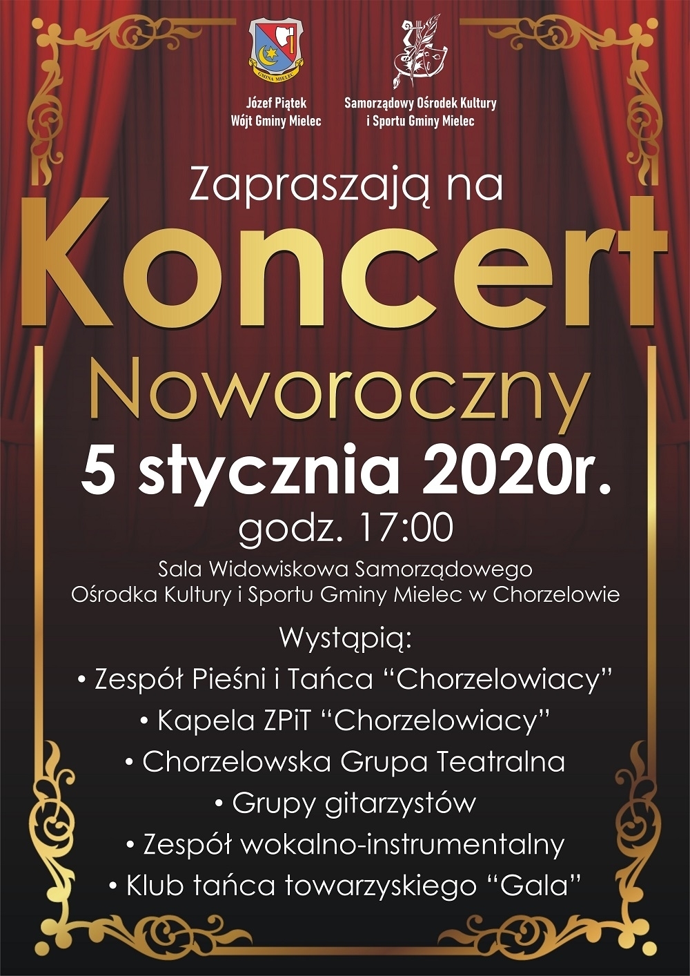 Styczeń jest okresem, podczas którego na całym świecie odbywają się wydarzenia kulturalne będące podsumowaniem roku ubiegłego oraz zapowiedzią tego co czeka nas w roku bieżącym. Tradycję tę kontynuują również artyści z chorzelowskiego Ośrodka Kultury. Specjalnie na tę okazję przygotowali okolicznościowy program będący zwieńczeniem dotychczasowej pracy twórczej. W niedzielę usłyszeć będzie można tradycyjne polskie kolędy i pastorałki, a także utwory rozrywkowe. Nie zabraknie również pokazów grup tańca ludowego oraz tańca towarzyskiego.