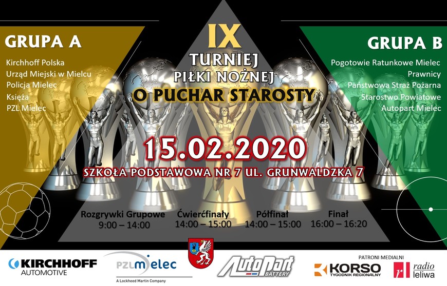 W sportowej rywalizacji zmierzy się łącznie dziesięć drużyn. Piłkarskie zespoły zawiążą pracownicy firm Kirchhoff Polska, PZL Mielec i Autopart Mielec, a także urzędnicy ze Starostwa Powiatowego w Mielcu oraz Urzędu Miejskiego w Mielcu. Tradycyjnie udział w turnieju wezmą też drużyny Prawników, Straży Pożarnej, Policji i Pogotowia Ratunkowego. Piłkarskie wyzwanie, po latach przerwy, podejmie także drużyna Księży.